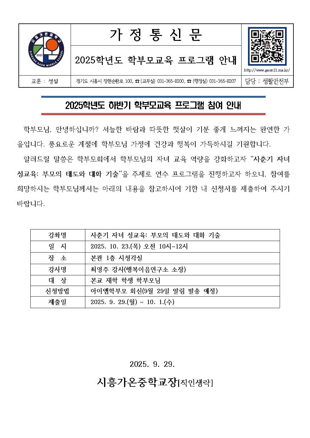 [ÀϹÝ] 2025 ÇϹݱâ Çкθ𠱳À° ÇÁ·Î±×·¥ °¡Á¤Åë½Å¹®