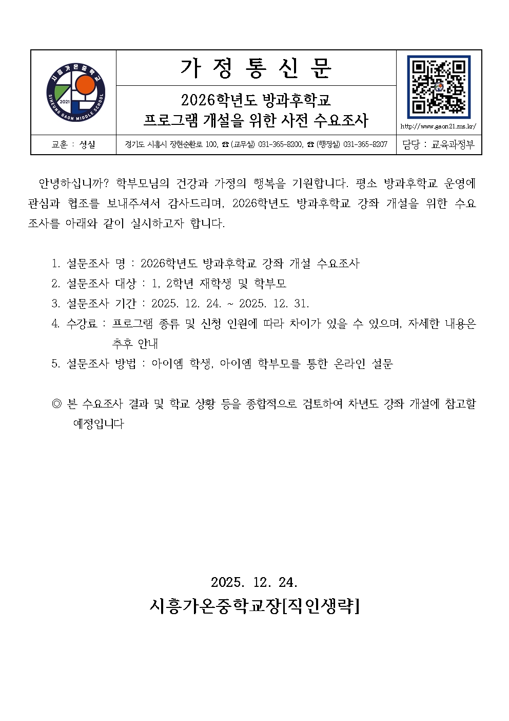 2026Çг⵵ ¹æ°úÈÄÇб³ ÇÁ·Î±×·¥ °³¼³À» À§ÇÑ »çÀü ¼ö¿äÁ¶»ç.pdf (74.15KB)