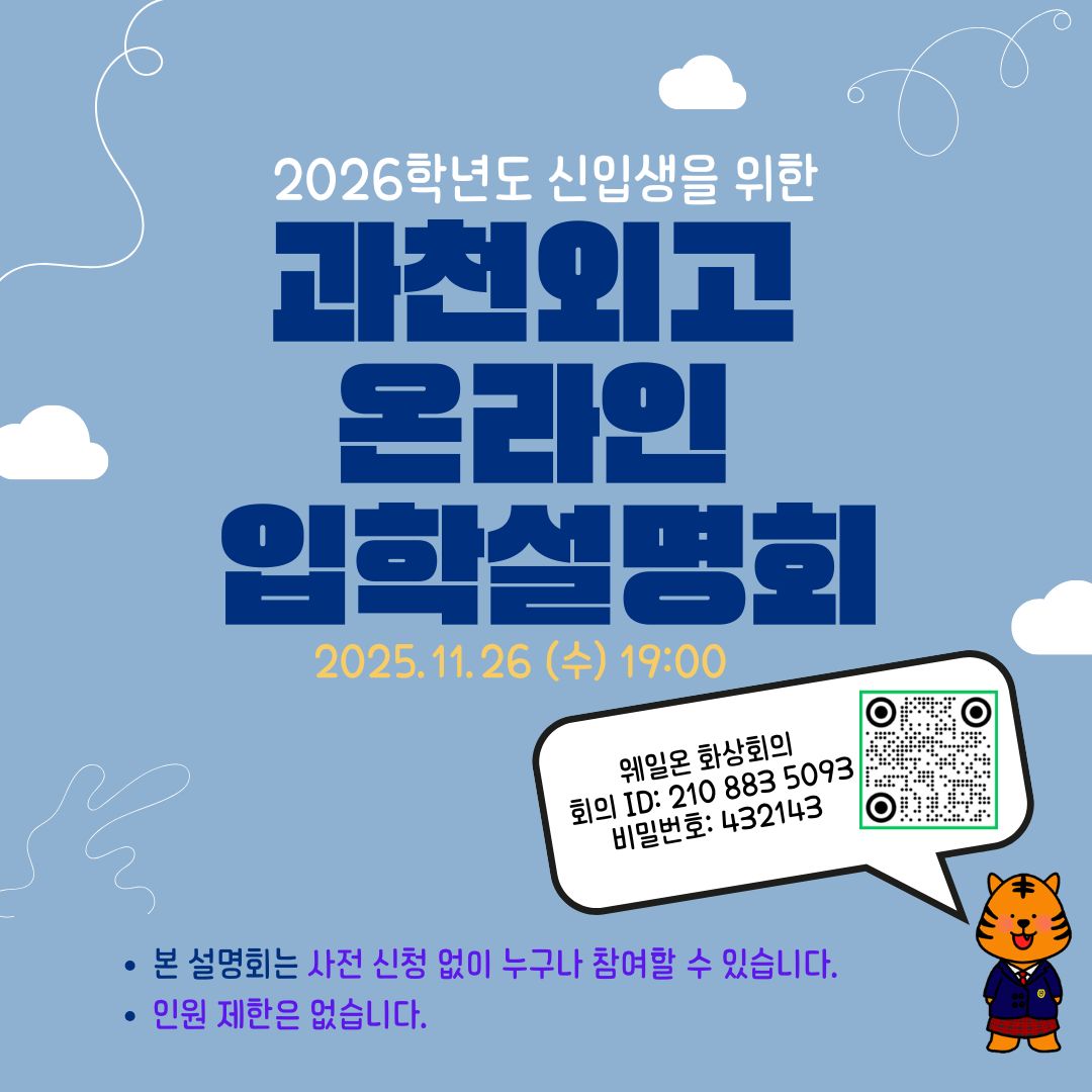![[ÀϹÝ] 2026Çг⵵ °úõ¿Ü±¹¾î°íµîÇб³ ¿Â¶óÀÎ ÀÔÇÐ ¼³¸íȸ ¾È³»ÀÇ Ã·ºÎÀ̹ÌÁö 1](/download/101/menu/1810/69/1/2026Çг⵵ ½ÅÀÔ»ýÀ» À§ÇÑ °úõ¿Ü°í ¿Â¶óÀÎ ¼³¸íȸ ¾È³»¹®.jpg?nocount=1)