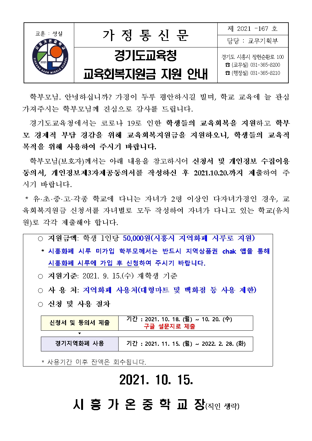 [ÀϹÝ] [2021-167]°æ±âµµ±³À°Ã» ±³À°È¸º¹Áö¿ø±Ý Áö¿ø ¾È³»