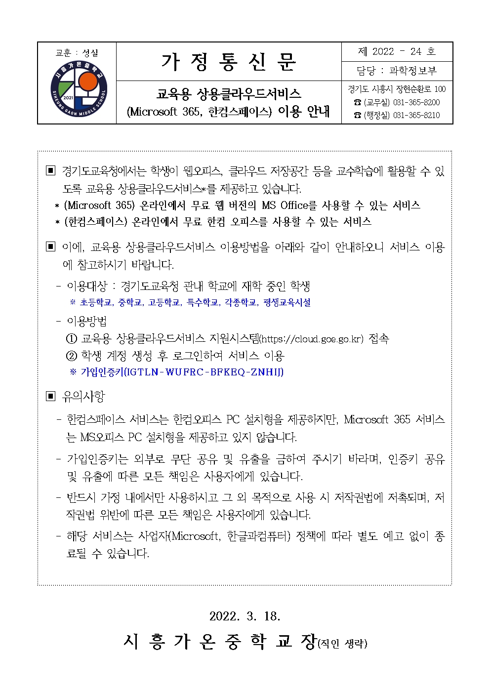 [2022-25]2022Çг⵵ ½ÃÈï°¡¿ÂÁßÇб³ ½ÅÀÔ»ý ÇϺ¹ ±¸¸Å ¾È³»