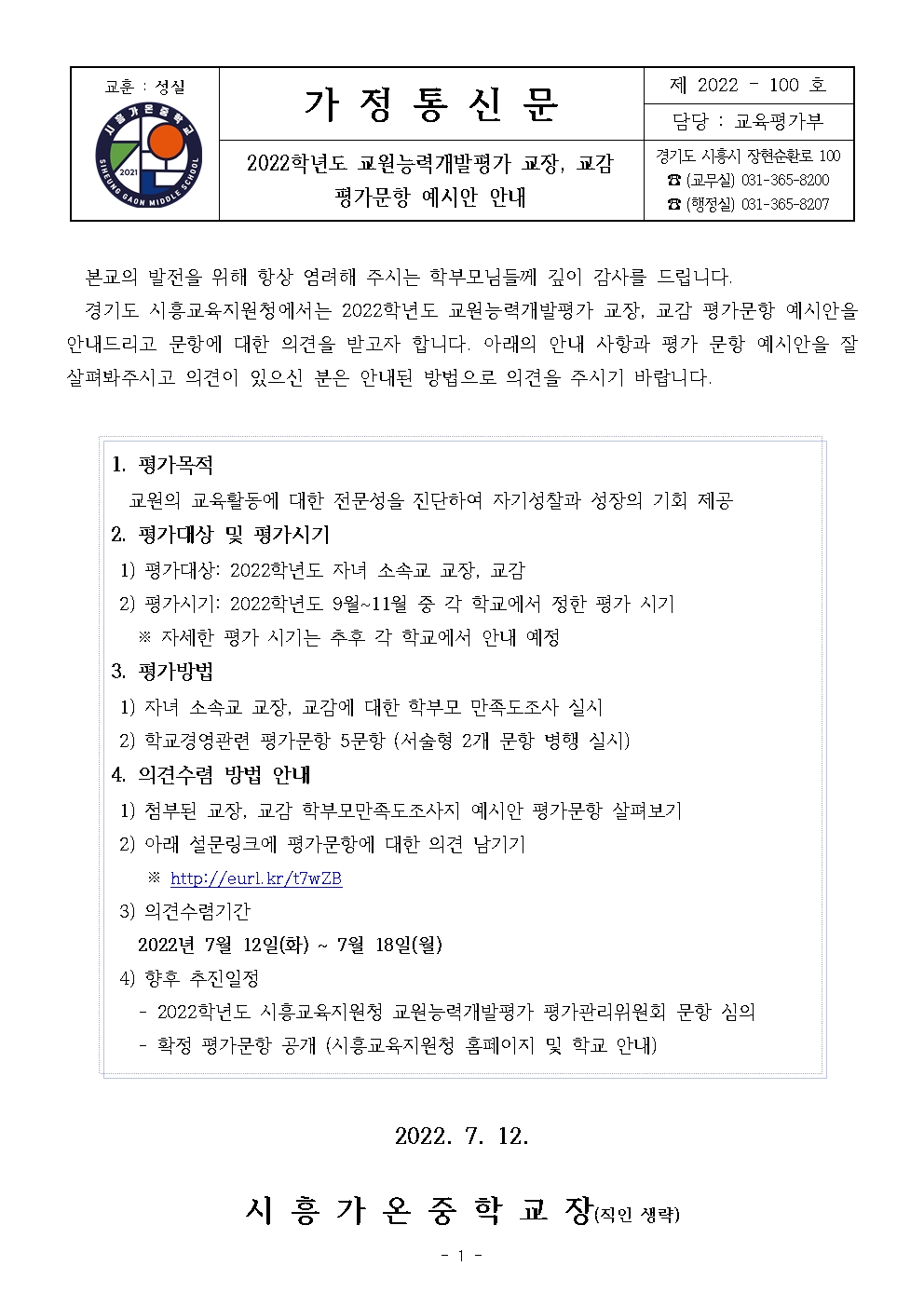 [ÀϹÝ] [2022-100]2022Çг⵵ ±³¿ø´É·Â°³¹ßÆò°¡ ±³Àå, ±³°¨ Æò°¡¹®Ç× ¿¹½Ã¾È ¾È³»