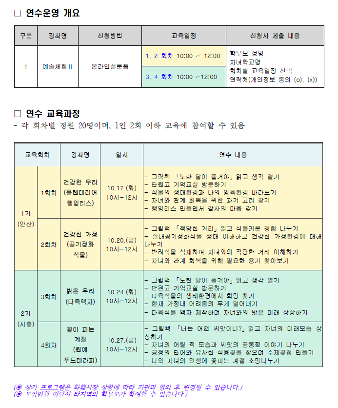 <¼ö°­»ý ¸ðÁý °³¿ä> ¡Û ±³À°±â°£ : 2023. 10. 23.(¿ù) ~ 11.18.(Åä) ¡Û Àå ¼Ò : ¸ñ°¨¾î¿ï¸²¼¾ÅÍ, ¿ù°ùµµ¼­°ü, ¹è°ðµµ¼­°ü, ´ë¾ßµµ¼­°ü, ´É°îµµ¼­°ü * »ó¼¼ ÀÏÁ¤ ¹× Àå¼Ò È«º¸¹° ÂüÁ¶ ¡Û ¸ðÁý´ë»ó : ºÎ¸ð±³À° ¹× °­»çȰµ¿¿¡ °ü½ÉÀÖ´Â ½ÃÈï½Ã¹Î 100¸í(±Ç¿ªº°20¸í¾¿) ..