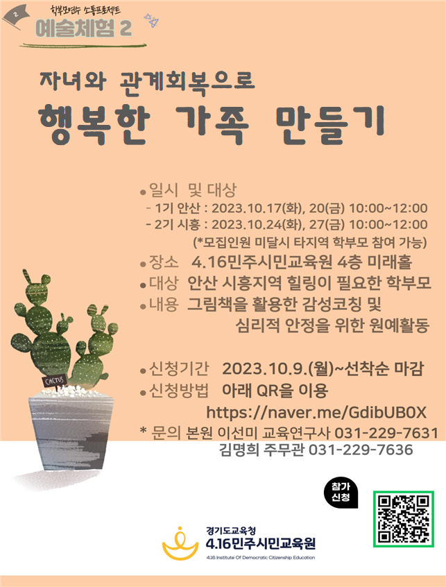 [ÀϹÝ] 4.16¹ÎÁֽùα³À°¿ø¿¡¼­ ÁøÇàÇÏ´Â ½Ã¹Î±³À° ¼ÒÅë ÇÁ·ÎÁ§Æ®(¿¹¼úüÇè) ¿î¿µÀÇ Ã·ºÎÀ̹ÌÁö 2