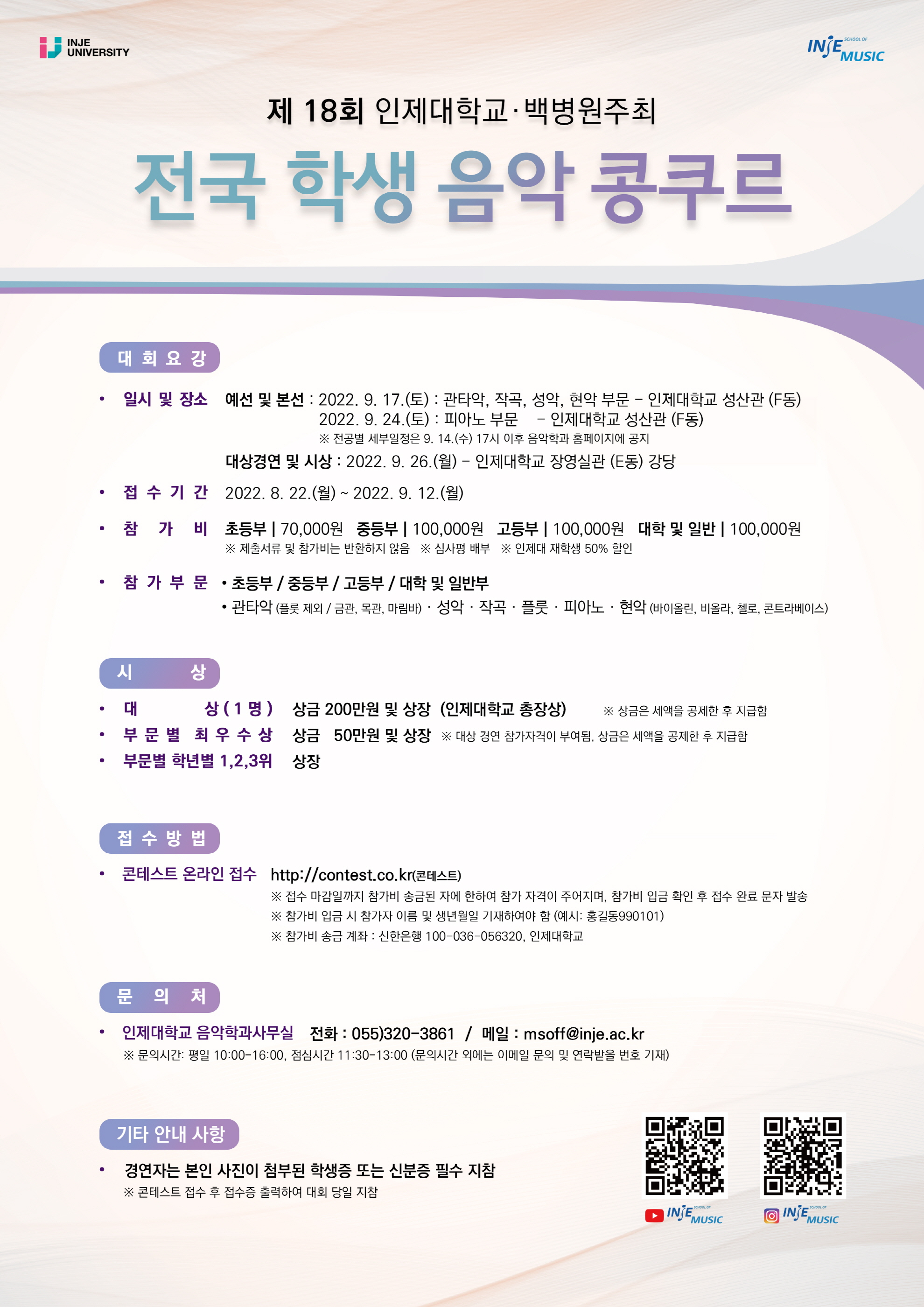 [ÀϹÝ] Á¦18ȸ ÀÎÁ¦´ëÇб³ ¹éº´¿ø ÁÖÃÖÀü±¹ Çлý À½¾Ç ÄáÄí¸£ ¾È³»