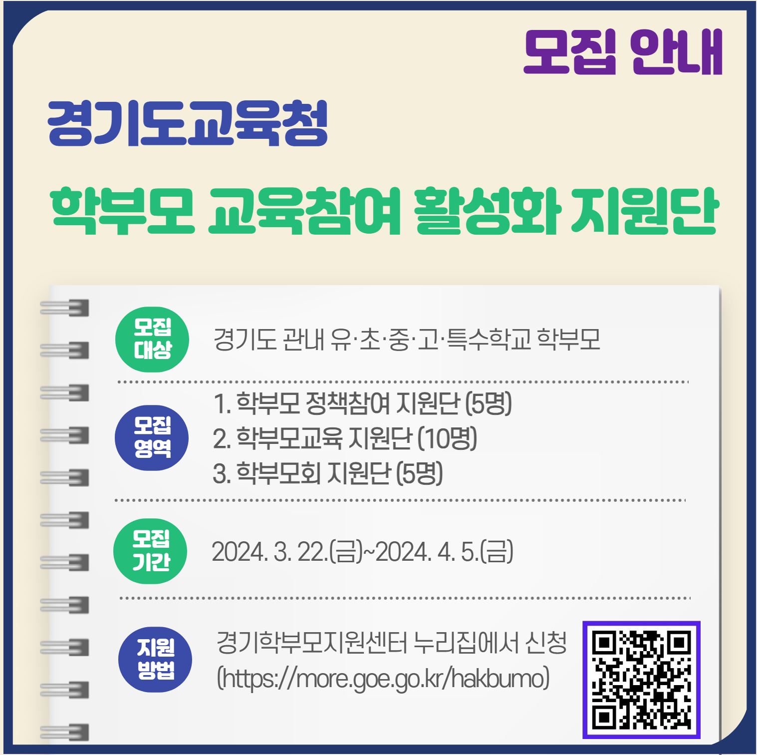 2024³â ±³À°ºÎ Çкθð Á¤Ã¥ ¸ð´ÏÅÍ´Ü Ãß°¡ ¸ðÁý ¾È³» - ¸ðÁýÀοø: Çкθð 793¸í - Ȱµ¿³»¿ë: ±³À°Á¤Ã¥ ¸ð´ÏÅ͸µ, ¾ÆÀ̵ð¾î Á¦¾È, ¼³¹®Á¶»ç Âü¿© µî - ¸ðÁý±â°£: 2024. 03. 20. ~2024. 4. 3. 17:00±îÁö - Áö¿ø¹æ¹ý:±¸±Û ¼³¹®(https://forms.gle/DPLcqeTviwvzwYyM9) ÀÛ¼º ÈÄ Á¦Ãâ - ¹®ÀÇ»çÇ×: °æ±âÇкθðÁö¿ø¼¾ÅÍ(ÀüÈ­ ..