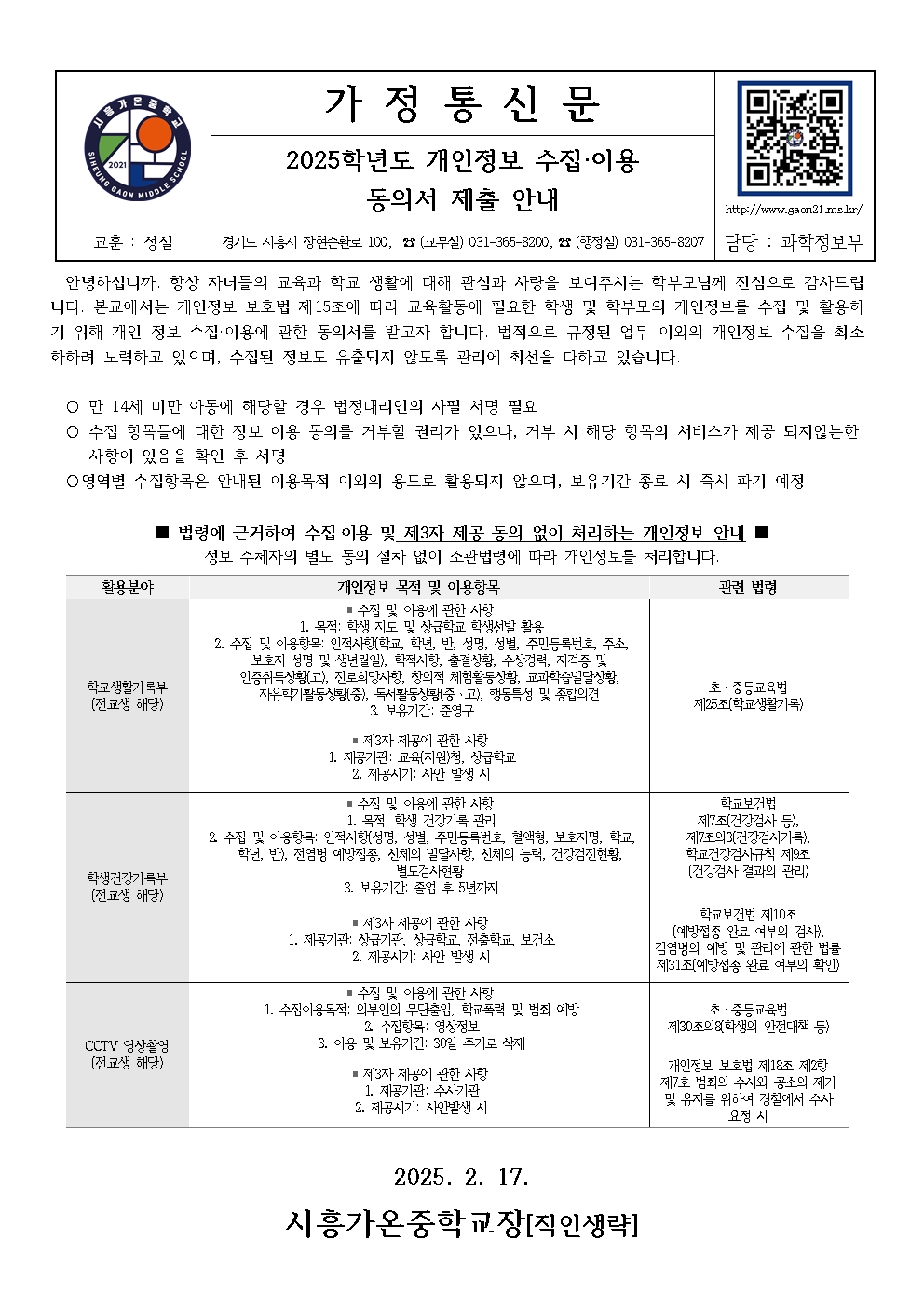 [ÀϹÝ] 2025Çг⵵ °³ÀÎÁ¤º¸ ¼öÁý¡¤ÀÌ¿ë µ¿ÀǼ­ Á¦Ã⠾ȳ»